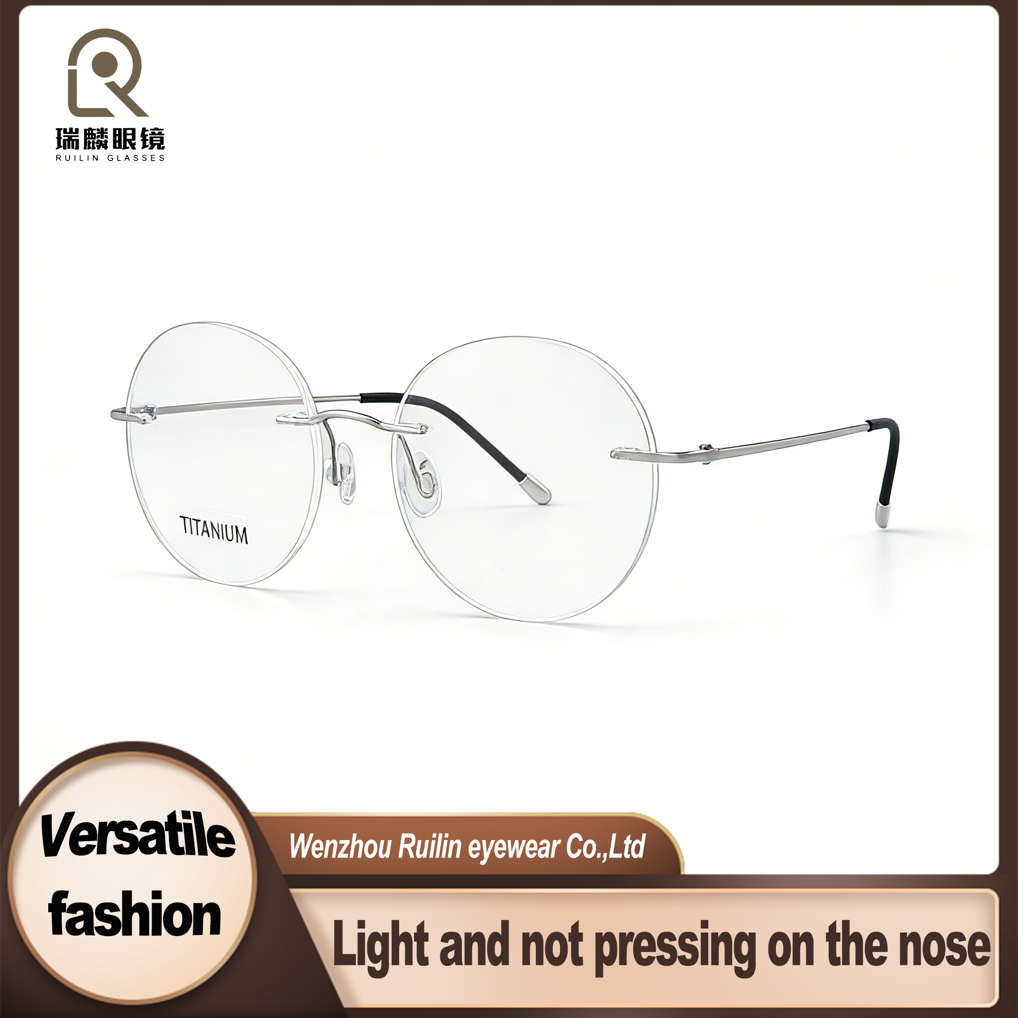 Armações ópticas circulares de titânio com logotipo personalizado